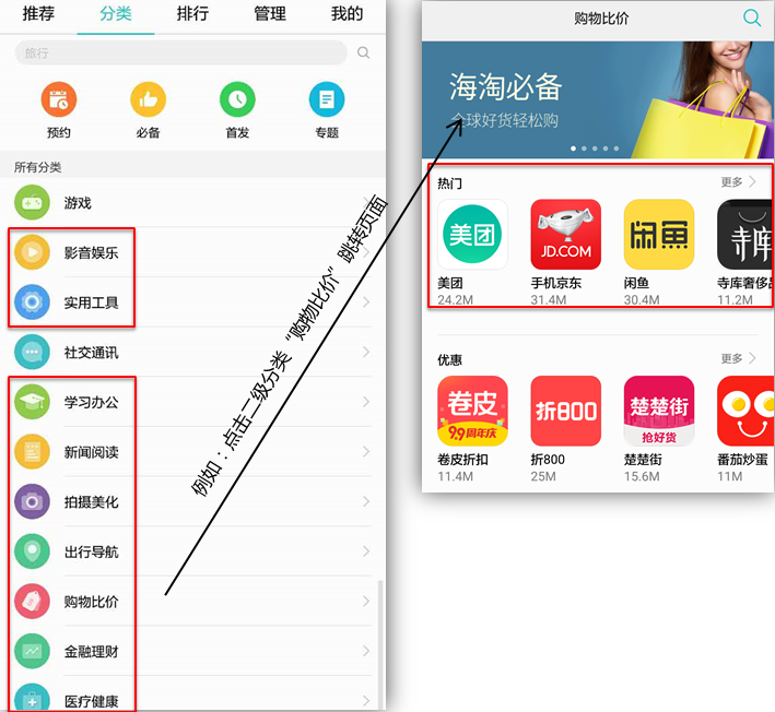 1. 首页精品应用推荐位置如下: