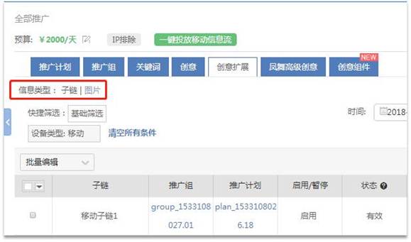 Ø 360推广电话&推广APP迁移至创意组件页面,创意扩展页面仅剩“比翼子链”和“比翼图片”。