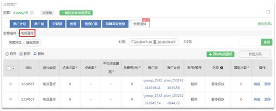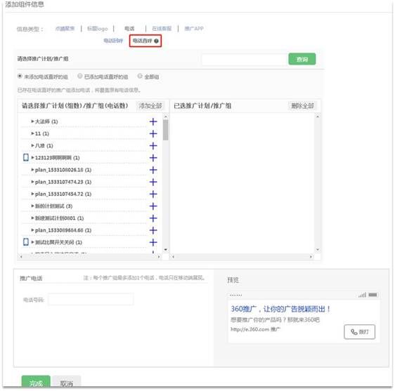 360推广电话迁移至创意组件页面后更名为“电话直呼”(“电话直呼”为移动端组件,注意区别于PC端组件“电话回呼”)。