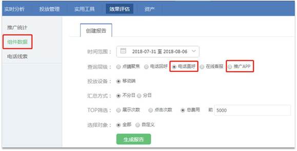 页面报告中,“推广电话“和”360推广APP“的数据迁移至“组件数据”中;