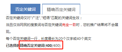 另: 推广计划&推广组层级的精确否定关键词数量已增加至400个