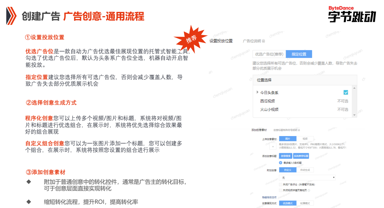 优选广告位是一款自动为广告优选不错展现位置的托管式智能工具,勾选了优选广告位后,默认为头条系广告位全选,机器自动开启智能投放。