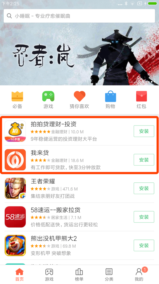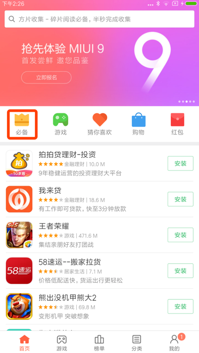 小米手机自带app的广告位,比如小米视频首页底部的九宫格位置