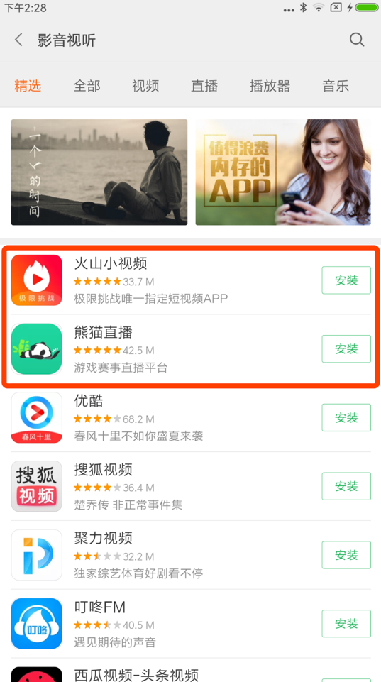 所有小米手机自带“小米视频”APP,横幅广告展示在“小米视频”首页和频道页。