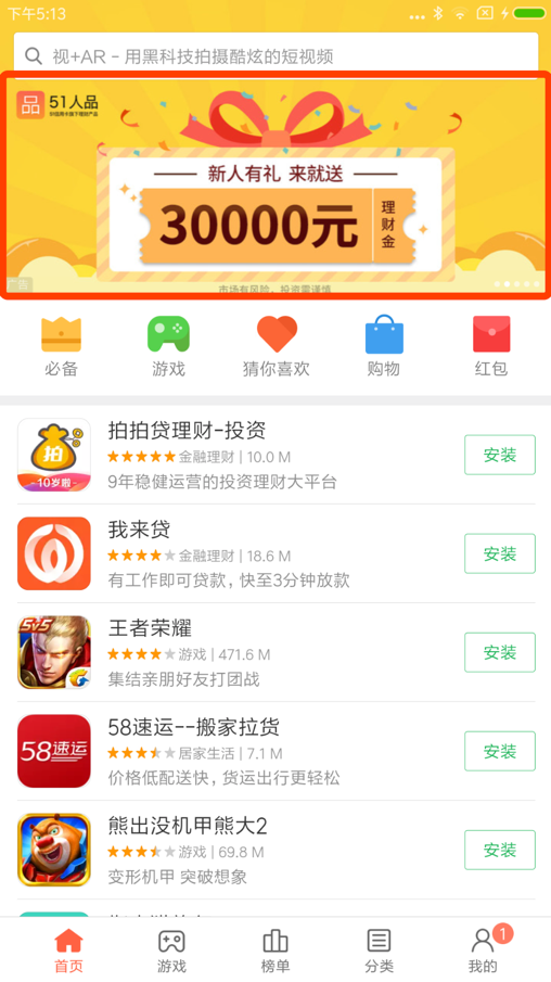 首屏banner CPT位置:应用商店首页顶部轮播banner第二位,共1个。