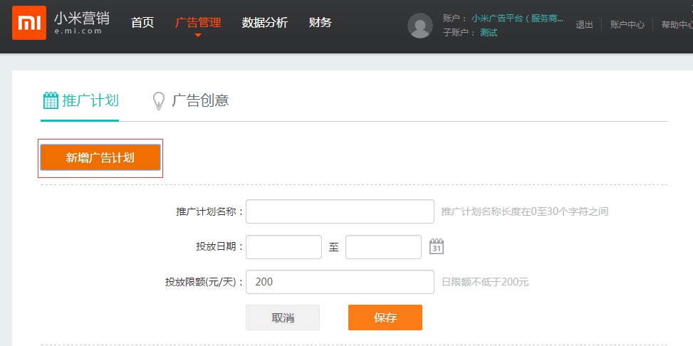 2. 游戏类客户请先和小米游戏联运,然后登录小米广告后台注册账户审核。