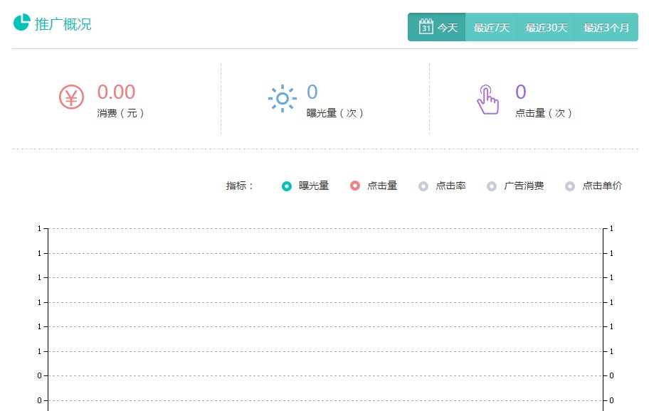 在首页的”推广概况”中,可查看整个账户的消费、曝光及下载信息。