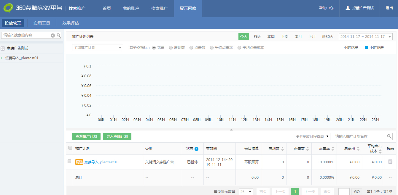 ④360展示网络:可在360展示网络中管理360展示网络物料及查看详细360推广效果数据