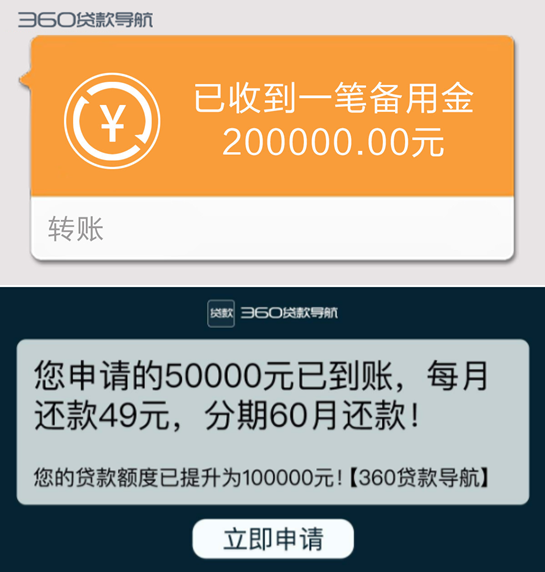 现代的广告贩卖的是用户的注意力。让广告成为一个通知,比如“短信通知”、“到账通知”、“新消息通知”,这种形式原生的素材,为用户营造了一个熟悉的情景,更容易引起用户注意,而且用户接纳广告信息的程度会更高。