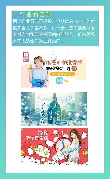 但是纵观这些设计素材网站,关于信息流广告的图片作品少之又少,有中姥姥不疼舅舅不爱的感觉,而广告营销相关的内容,更多的是账户操作和优化技巧,对于设计也是一片空白。