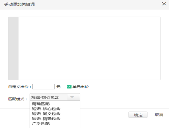 添加关键词选择匹配方式时原“短语匹配”选项变为了“短语-核心包含” “短语-同义包含” “短语-精确包含”三个选项