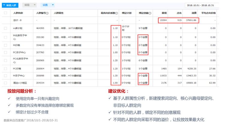 (1)账户现状指2018.10.1至2018.10.31期间账户搜索推广账户汇总数据;
