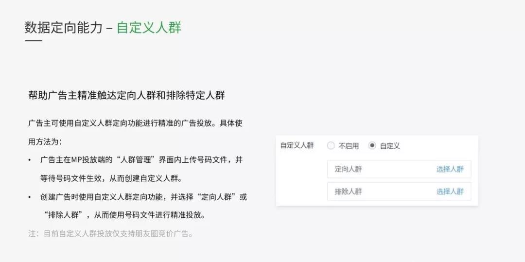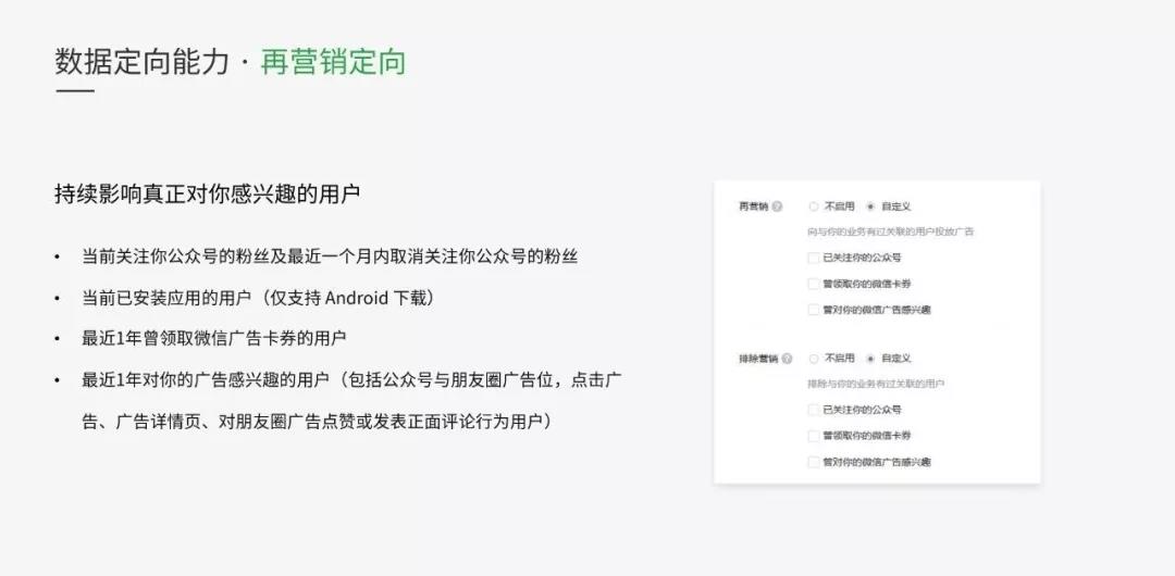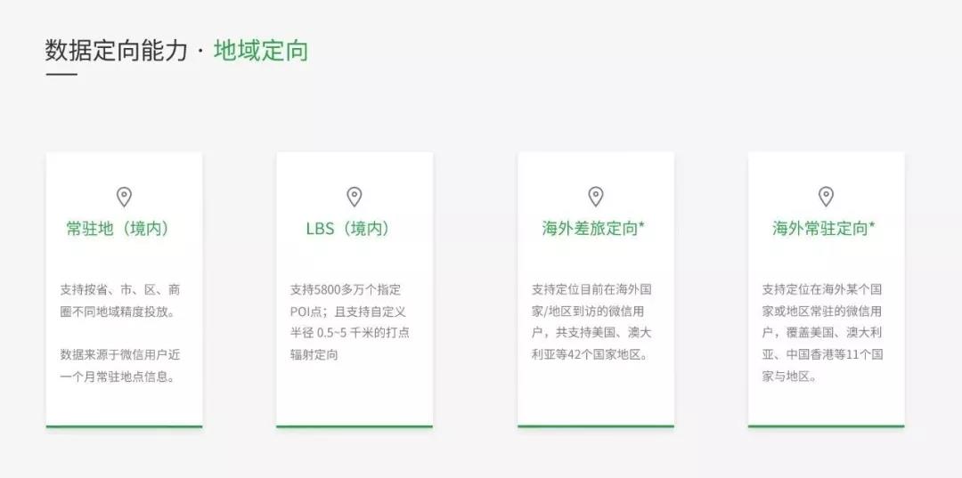 微信朋友圈广告数据定向功能:地域定向、基础定向、再营销定向、LBS定向、自定义人群