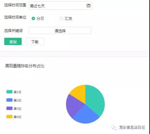 6:展现排名报告。在后台的排名展现报告,能大致判断出你一周的整体排名展现情况,我们的排名展现一切要依据转化。转化好,排名展现报告高与低倒不是很重要,但是转化不好,你的排名展现很高,也意义不大,或者说你的价格有虚高了。一般来讲,排名展现报告中,第一位排名占比≥第二名>第三名>第四名会比较好一点,这样意味着你的前三排名比较稳定。