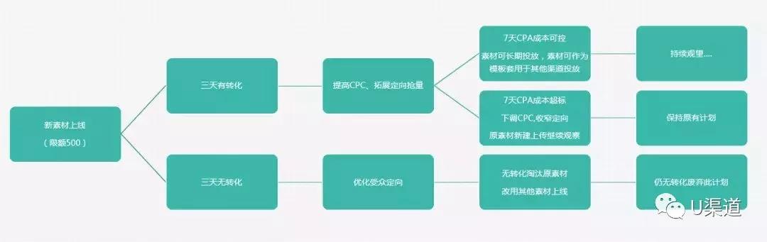 2、一个完整的信息流投放流程图基本上可以归为:精准定向目标用户-创意物料设计-优化着陆页-投放数据追踪-优化投放方向。