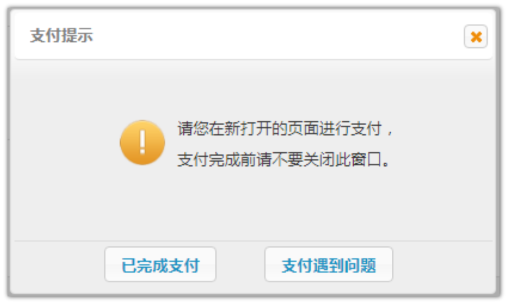 按照提示进行支付操作,如果支付完成,点击已完成支付按钮,完成本次支付: