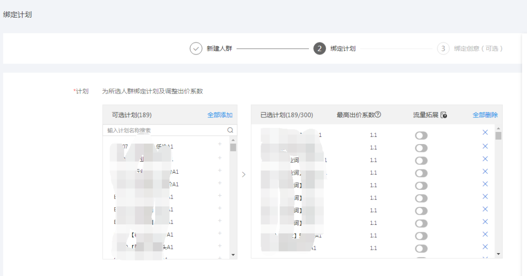 此人群计划建完以后,就关联了账户指定计划。如果人群计划还需要关联ecpc,获取更多大数据智能投放,进入【ocpc】管理页面继续绑定。