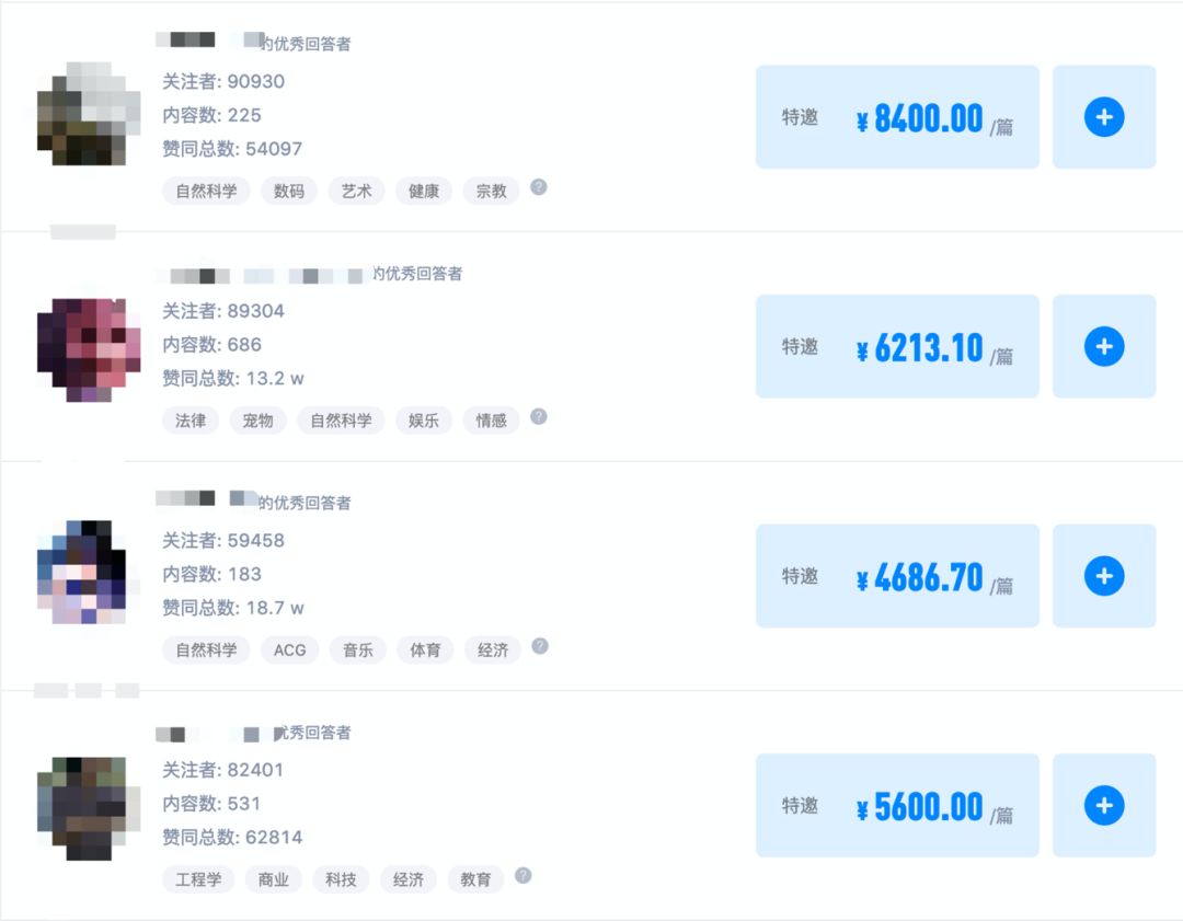 可以看到,在知任务系统中,大 V 适合的品类,在品类内的商业价值都清晰的量化了,让品牌方挑选大V更简单。在完成了「挑问题」、「找大 V」这两项操作后,就涉及到如何让回答排名靠前,获得更多曝光了。以前,此类操作常常结合一些非规范的操作,比如,找大 V 来关注点赞甚至是反对,但这些行为都是违规的,可能带来违规营销、删除回答和问题的后果,严重者甚至有封号的风险。我并不推荐。而知乎商业化以来,已经完全规范了这类流程,找官方认证 MCN 机构合作,通过「知任务」下单,和大 V 合作,不仅有更高的排序权重,让违规操作变的并没有必要。而且还有一个好处,通过「知任务」合作的内容不会被删 -- 此前在知乎任何带营销目的的内容,都可能被官方删除,原因包含算法自动检测、人工审核或竞品举报 -- 走官方「知任务」下单,避免了这个问题。同时,回答里可以插入「好物推荐」,直接进行带货转化。