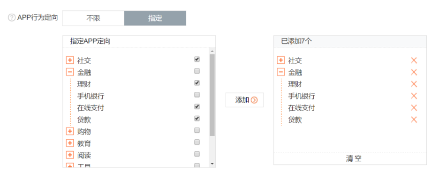 可同时设定“应用用户”(已安装未安装)+”APP行为定向“,根据广告主自身需求而定。